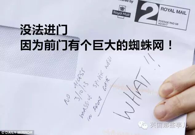 蛇啊熊啊直径一厘米的蜘蛛网啊啥的,我勉强可以接受。有个朴茨茅斯的哥们儿收到了皇家邮政这么一封信
