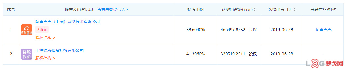 其中,第一大股东为阿里巴巴,持股比例为58.6%。第二大股东是上海德殷投资控股有限公司,持股41.4%。上海德殷投资控股有限公司由申通快递陈德军、陈小英共同持股,注册资本为2亿人民币。